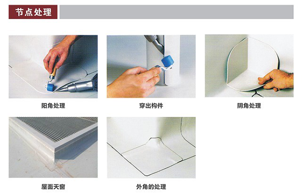 4、根據(jù)施工設計,在屋面彈出天溝中心及分水中心線,在大面積鋪貼之前,并對特殊部位如天溝、檐溝、女兒墻、立墻、水落口、伸出屋面的管道及設備基礎轉角及陰陽角處進行涂刷防水涂料或加貼附加層(加強帶),對分格縫內(nèi)填嵌密封材料并加鋪附加層。